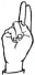 На ћирилици написано ЕЛЕНА ГЛУШИЋ састоји се из 11 слова [?]. Исписано ћириличном једноручном азбуком за глувонеме: